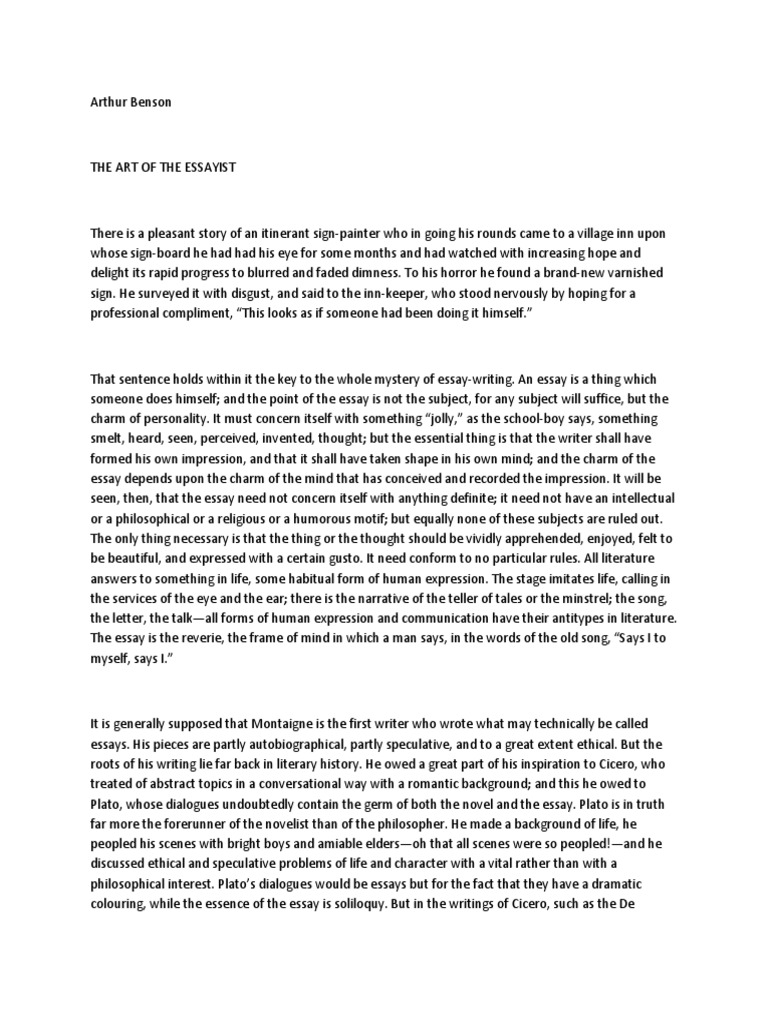 What classifies a masterpiece, however, is when not only one person understands what the artist was trying to say with the piece but when the majority does. Essay on art people believe that the fine arts are elitist. Nevertheless, art is not something that you have to study essay on art understand and enjoy.